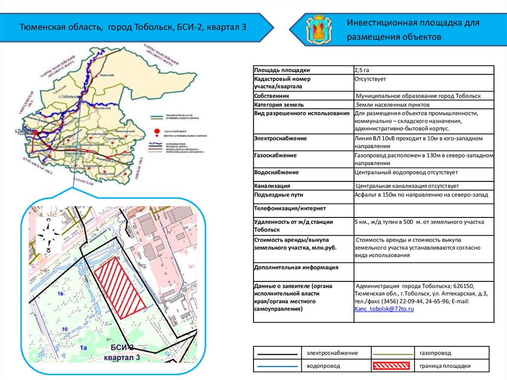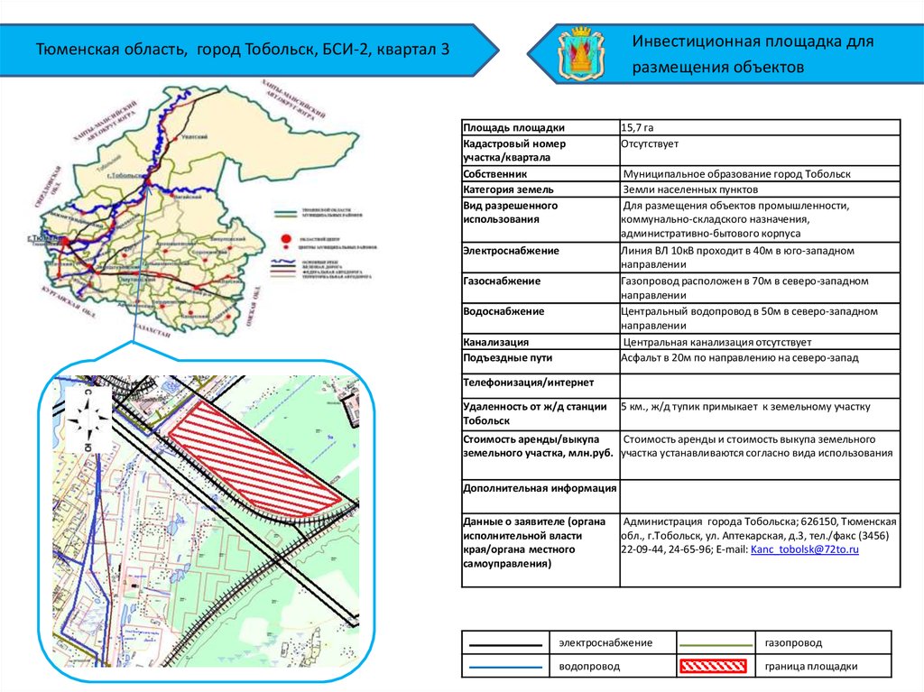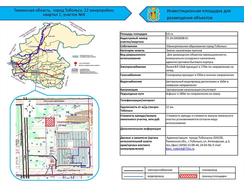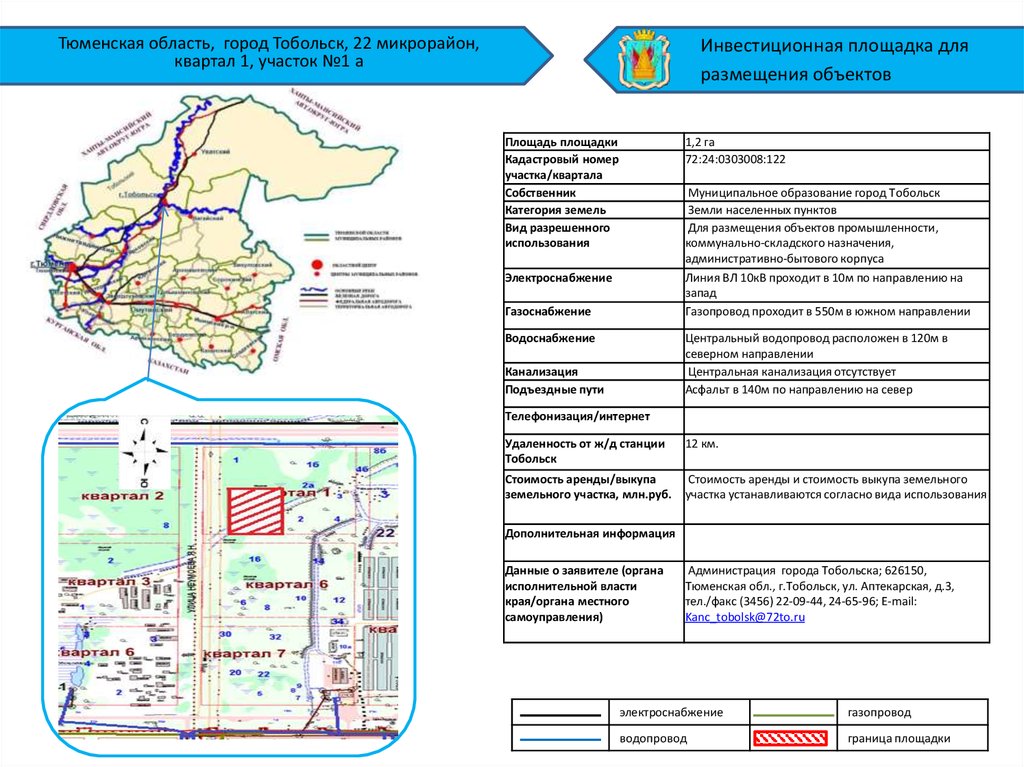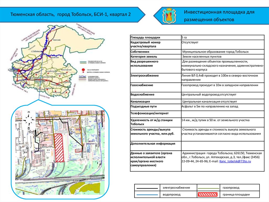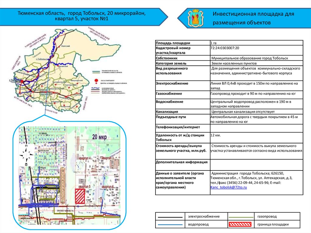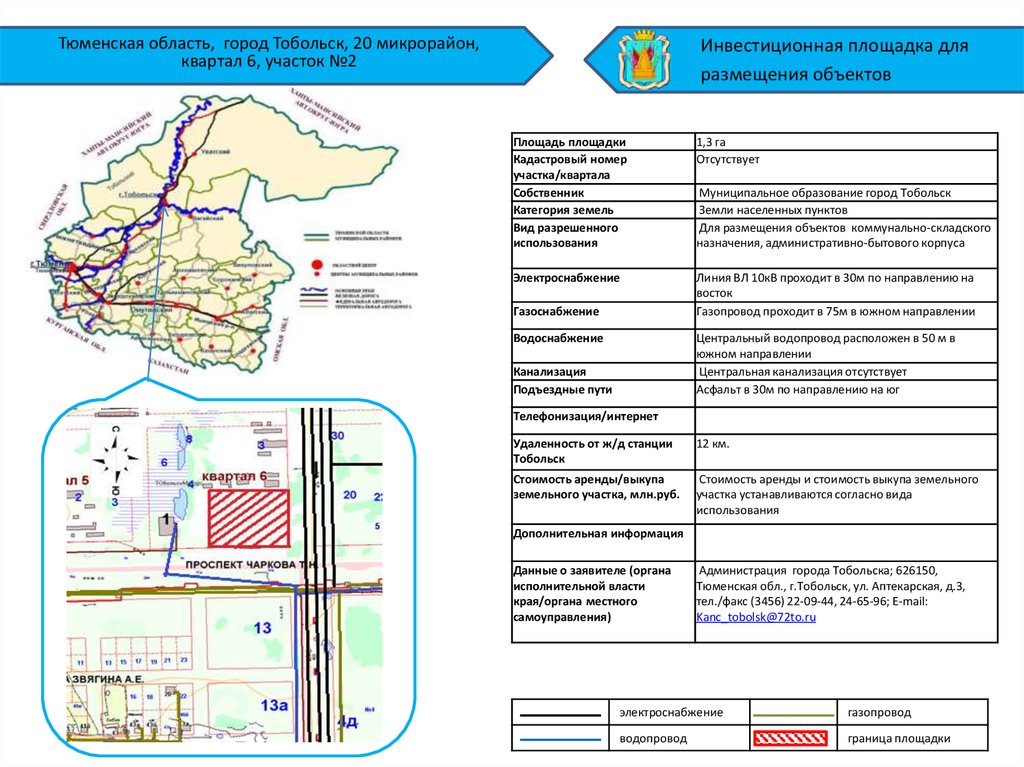 Инвестиционная площадка для размещения объектов Тюменская область, город Тобольск, 20 микрорайон