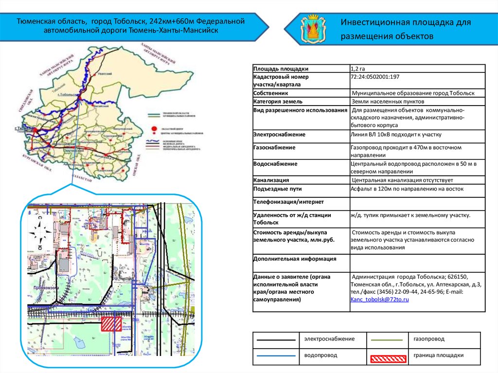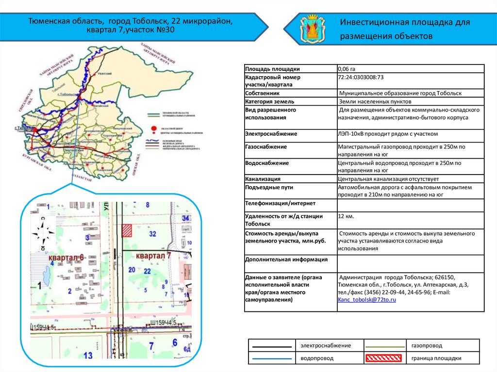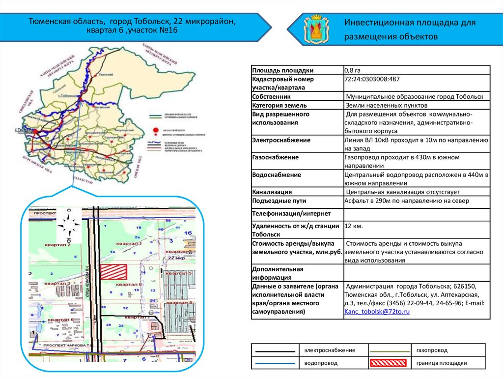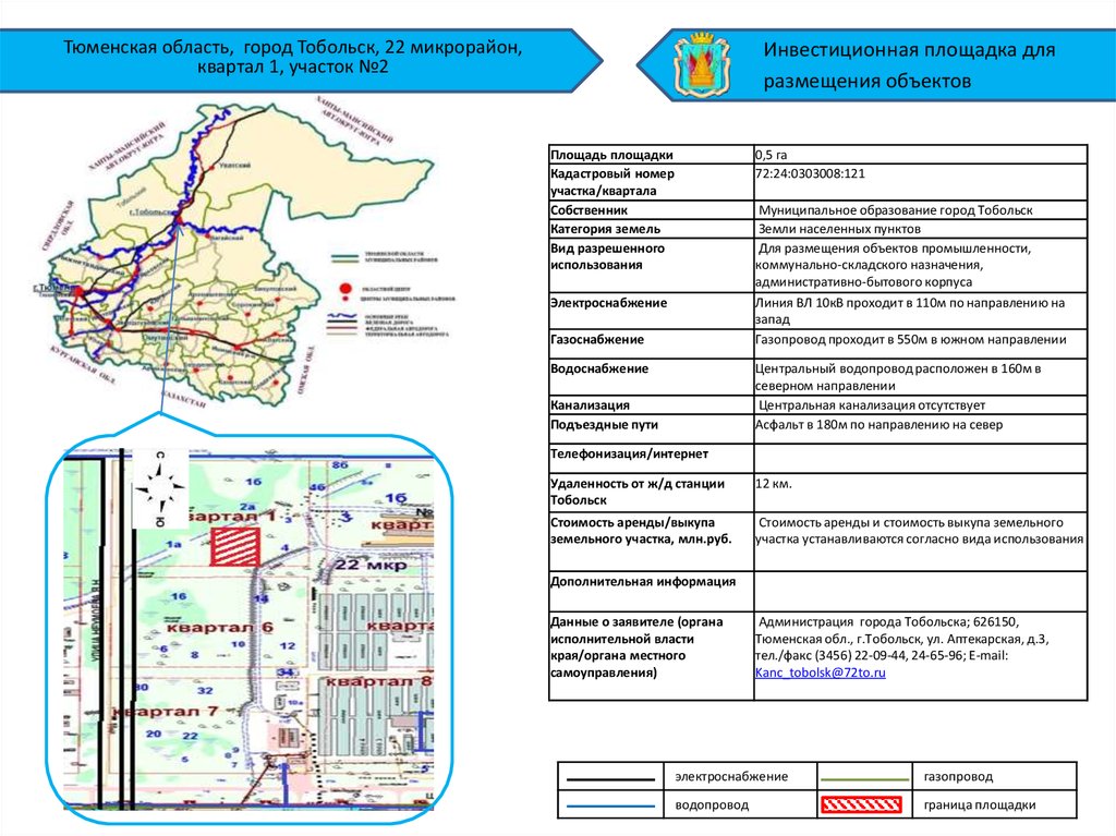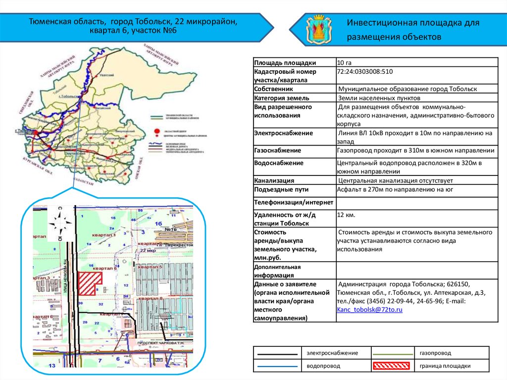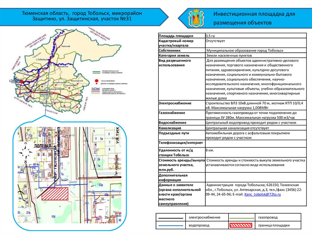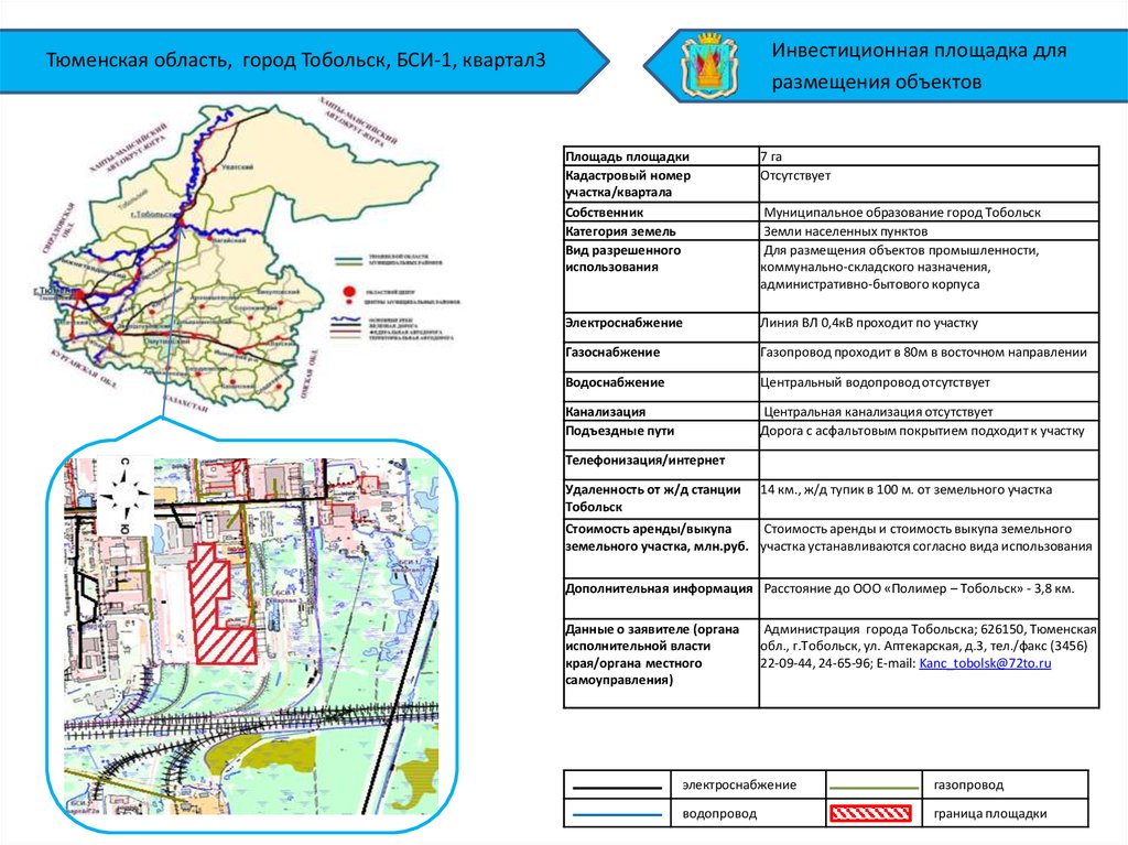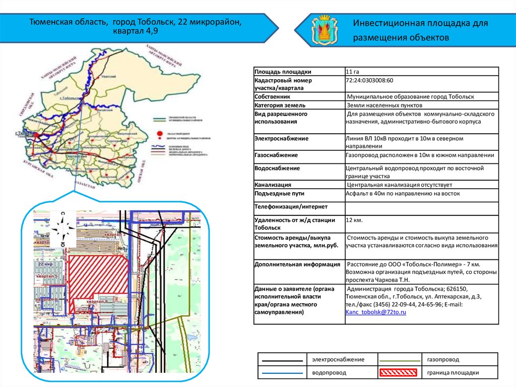 Инвестиционная площадка для размещения объектов Тюменская область, город Тобольск, 20 микрорайон
