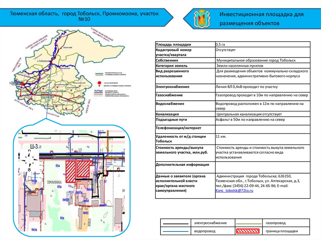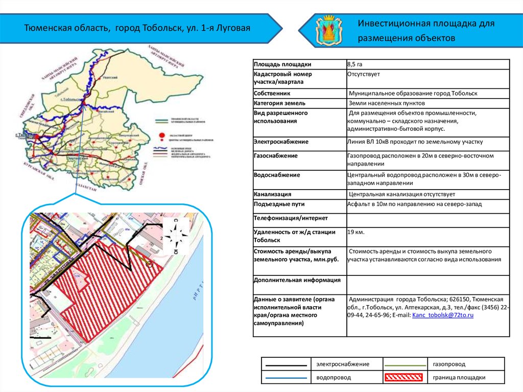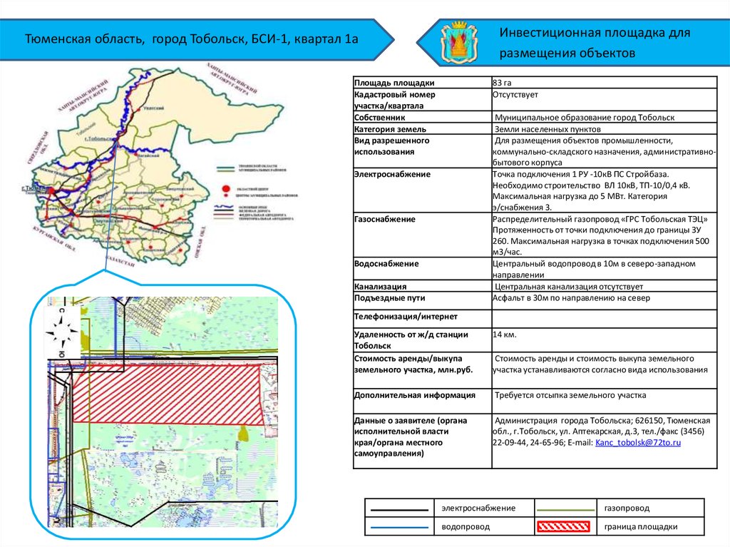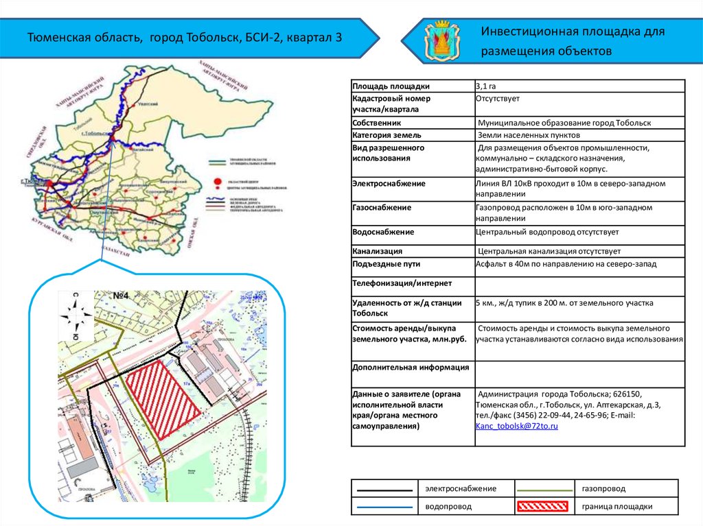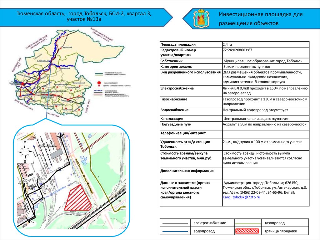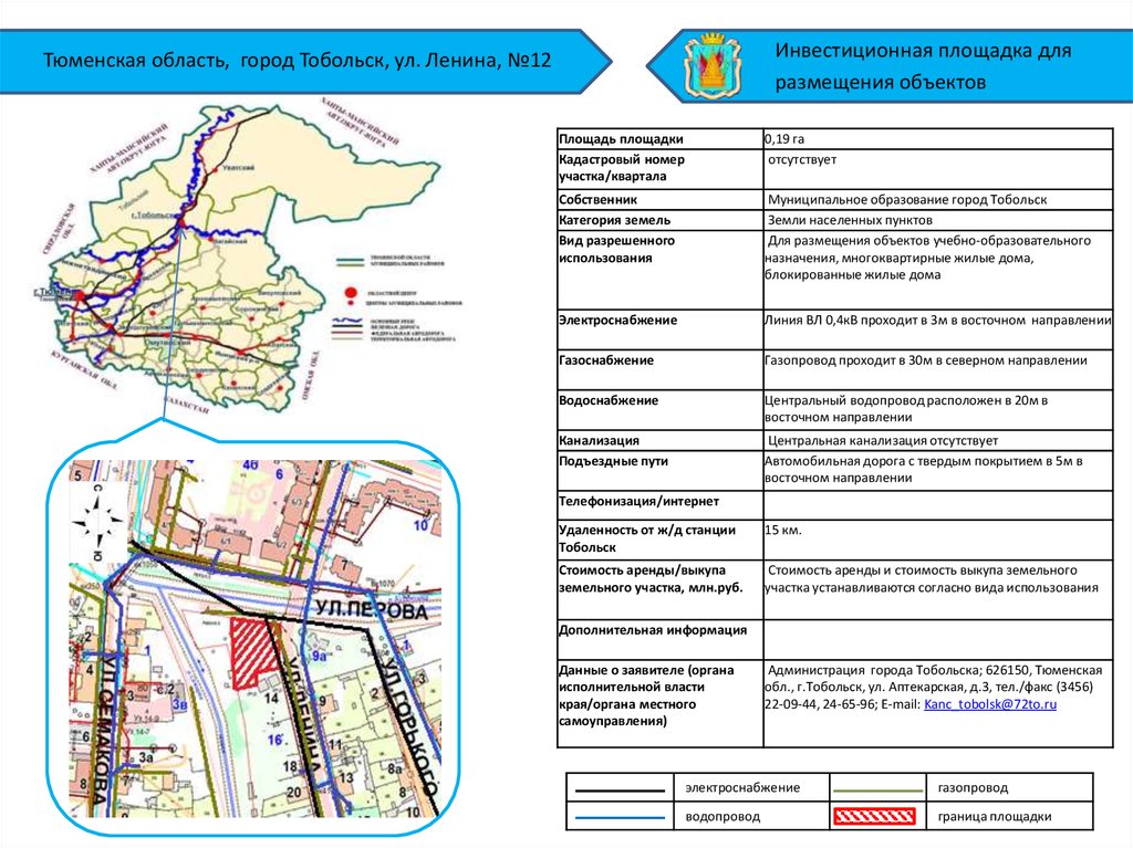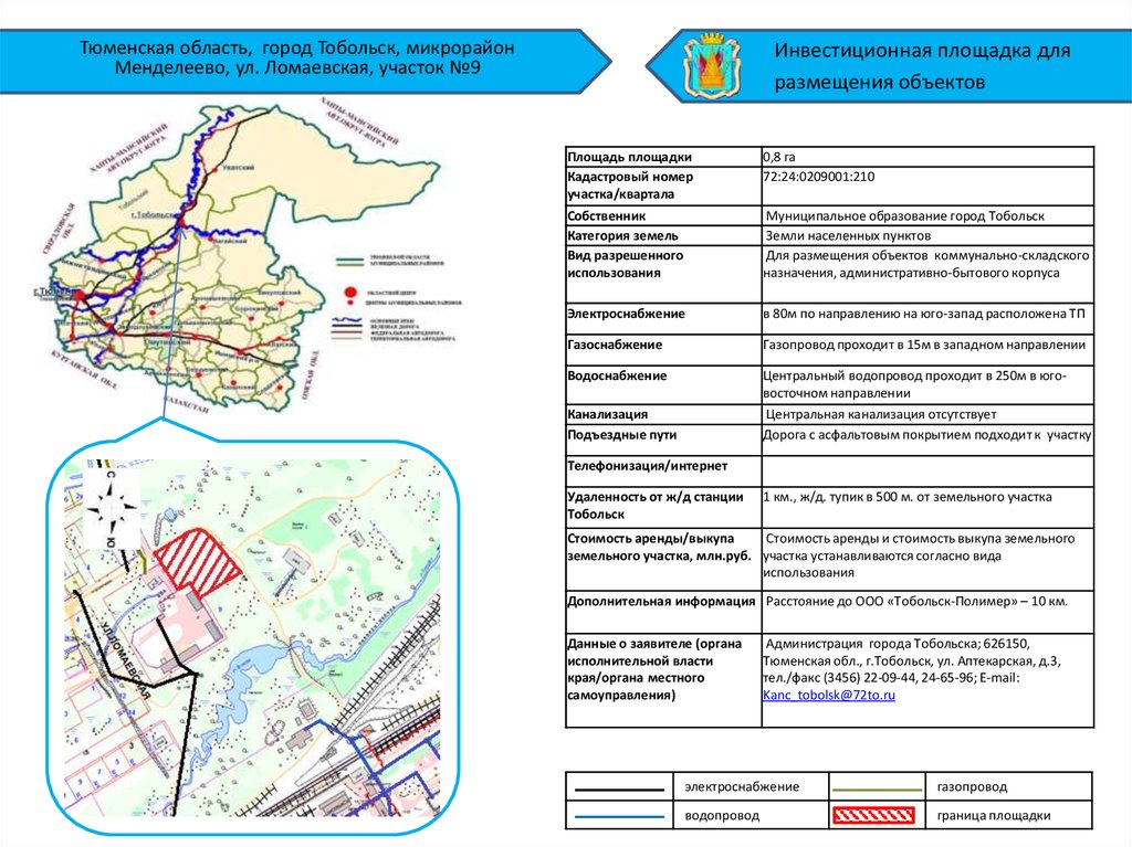 Инвестиционная площадка для размещения объектов Тюменская область, город Тобольск, 20 микрорайон