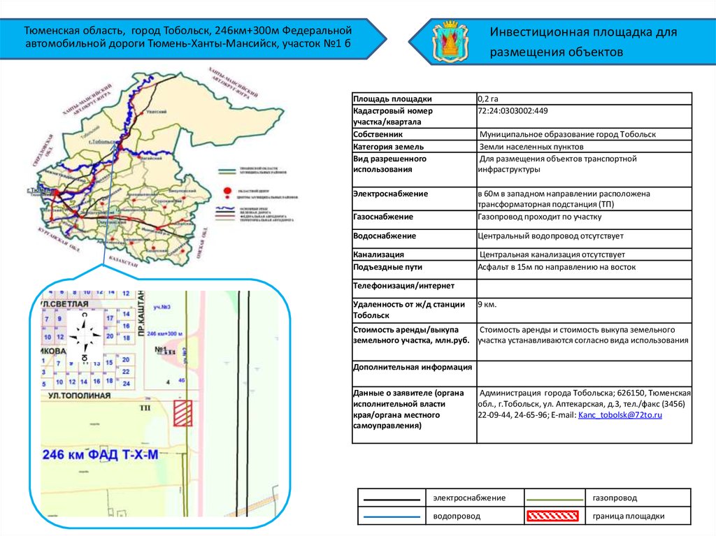 Тюменская область, город Тобольск, 246км+300м Федеральнойавтомобильной дороги Тюмень-Ханты-Мансийск, участок №1 б