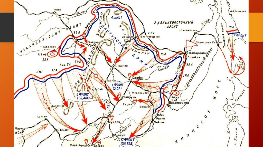 • Воюем с 9.08. – 2.09.1945 гг.• Наши силы: Забайкальский фронт, 1-ый и