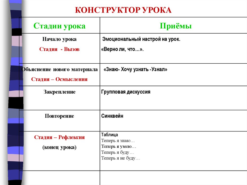 КОНСТРУКТОР УРОКАСтадии урока