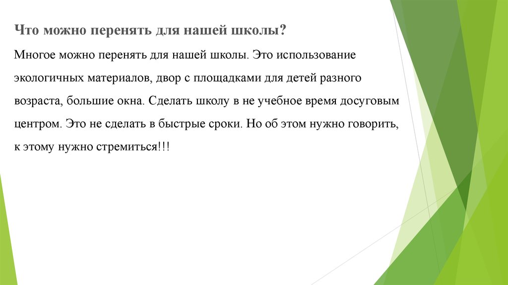 Что можно перенять для нашей школы?Многое можно перенять для нашей школы. Это использование