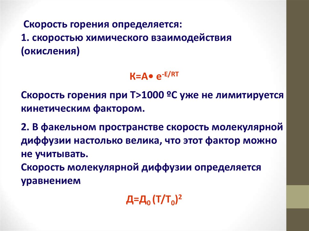 Скорость горения определяется:1. скоростью химического взаимодействия