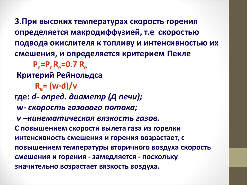 3.При высоких температурах скорость горенияопределяется макродиффузией, т.е скоростью