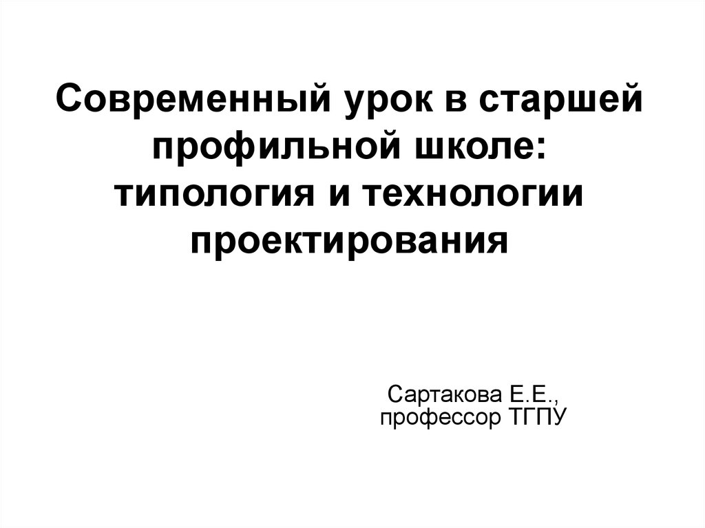 Современный урок в старшей профильной школе: типология и технологии проектирования