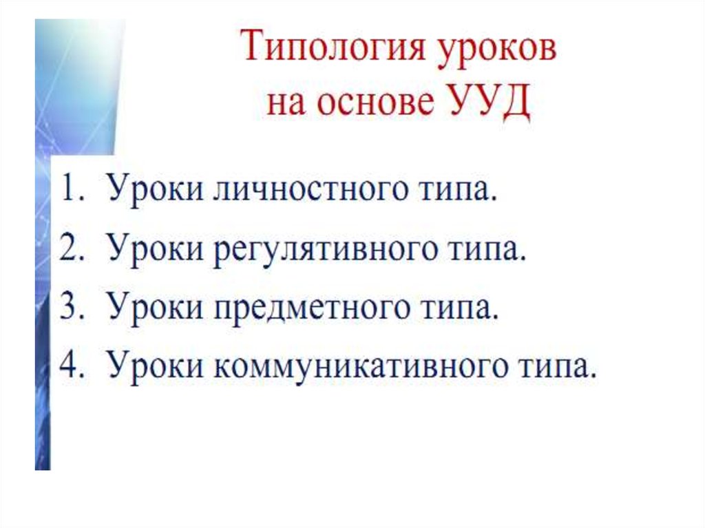 21. Современные образовательные результаты обуславливают также содержание и структуру современных урочных занятий. Так УУД есть-