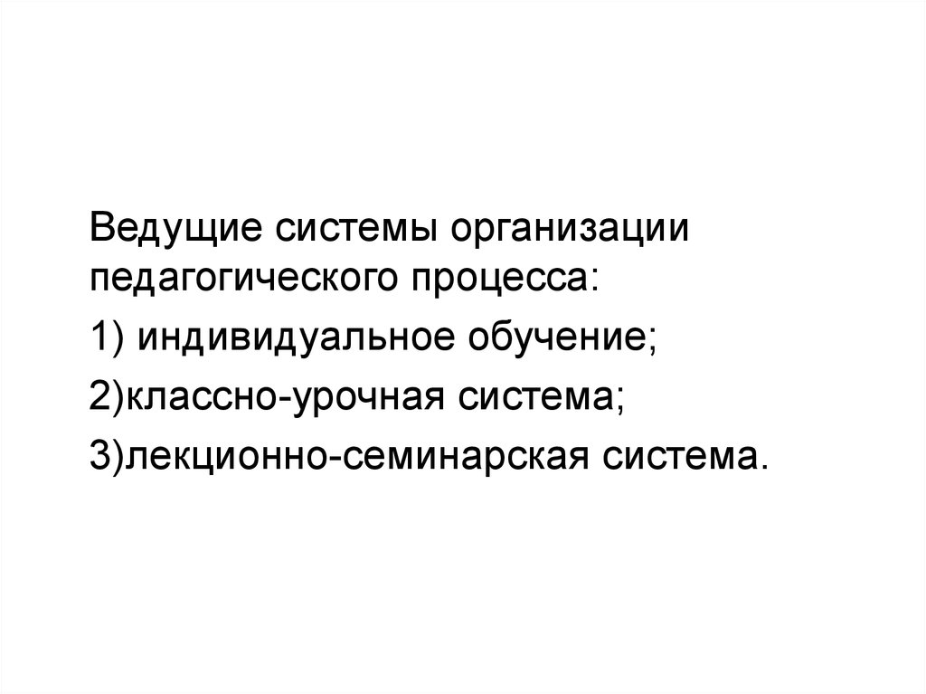 Ведущие системы организациипедагогического процесса: