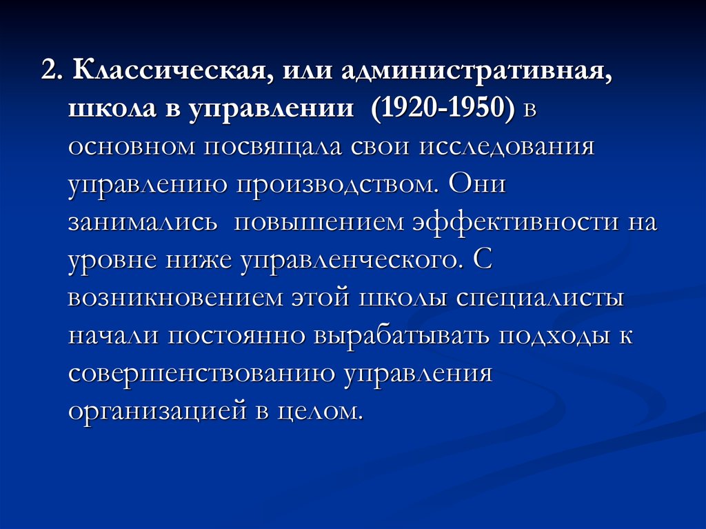 2. Классическая, или административная,школа в управлении (1920-1950) в