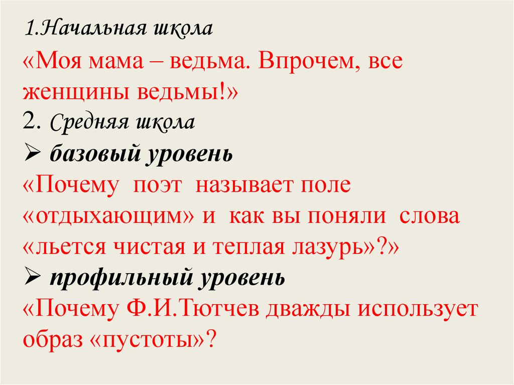 1.Начальная школа«Моя мама – ведьма. Впрочем, все