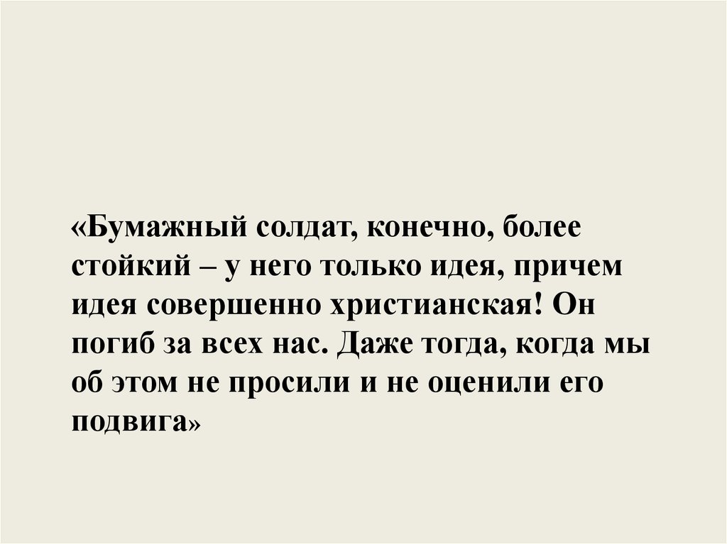 «Бумажный солдат, конечно, болеестойкий – у него только идея, причем