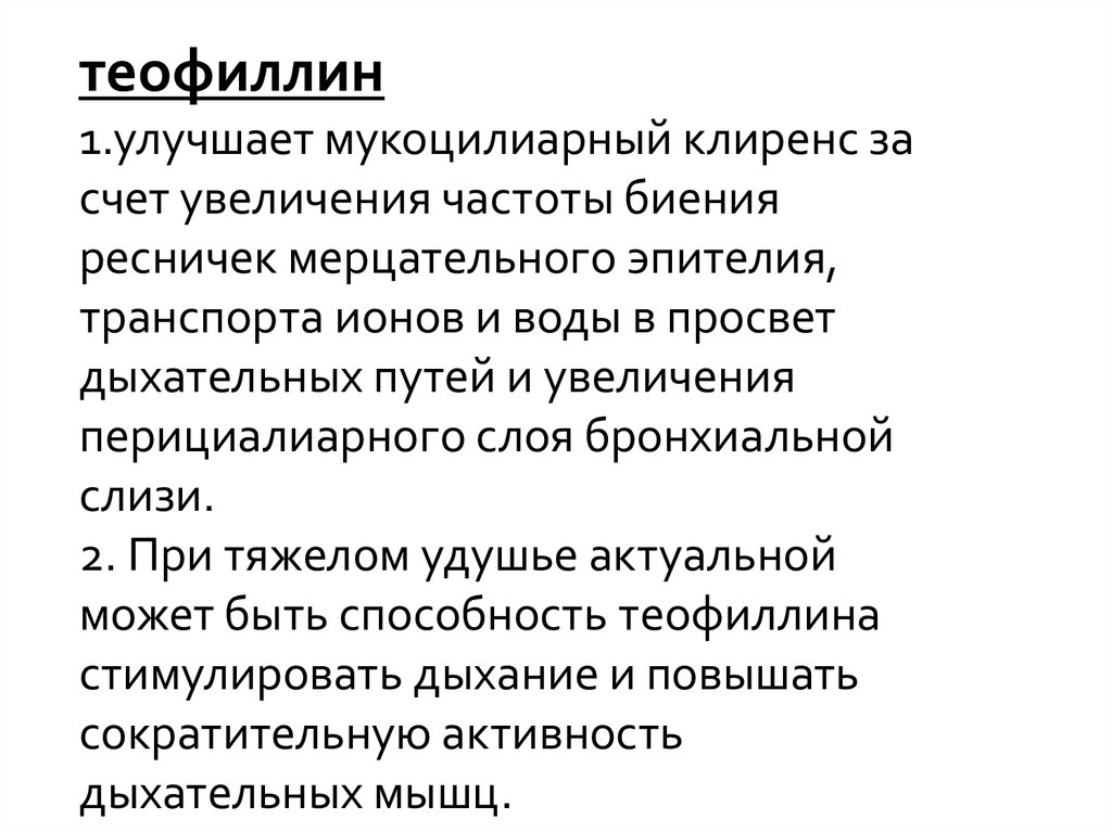 теофиллин1.улучшает мукоцилиарный клиренс за