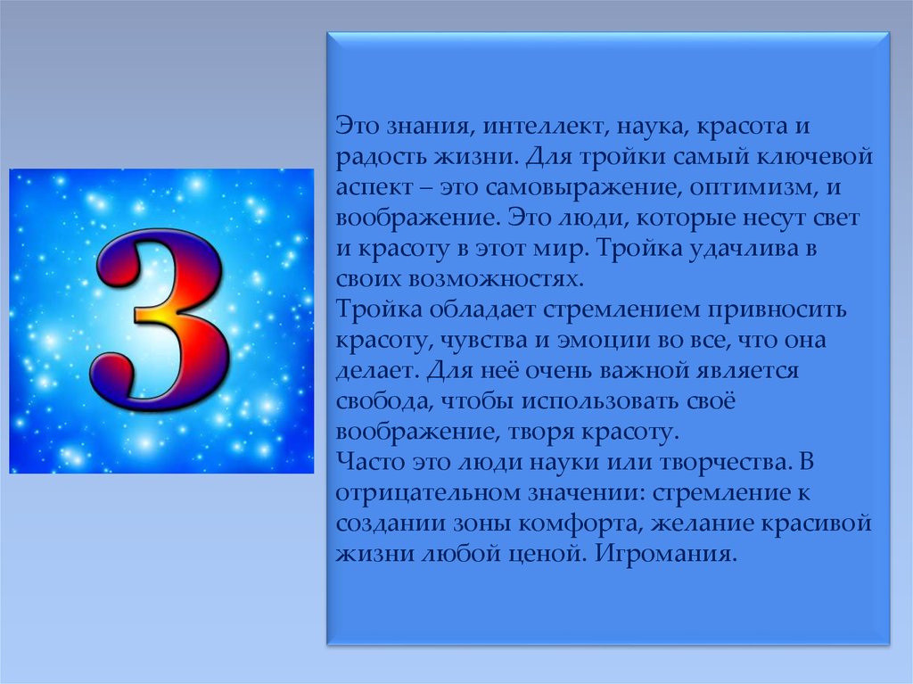 Это знания, интеллект, наука, красота ирадость жизни. Для тройки самый ключевой