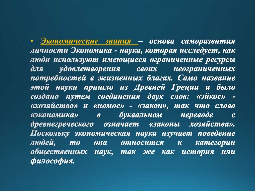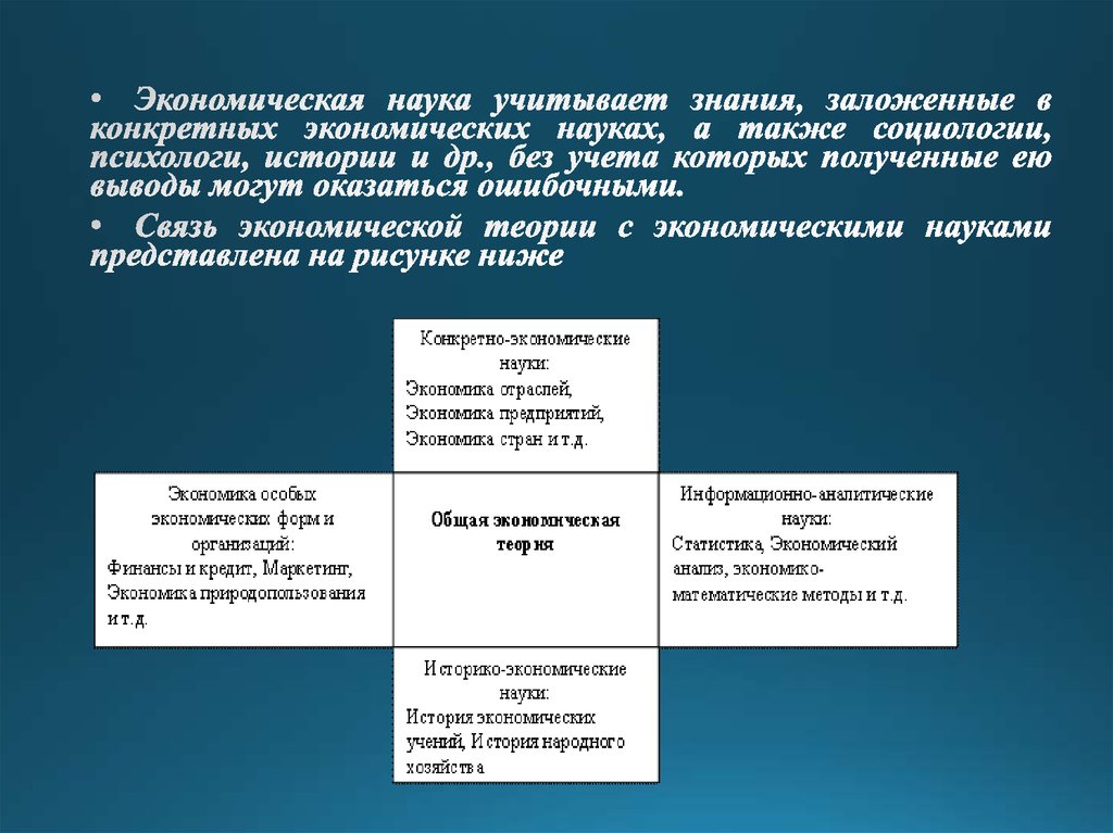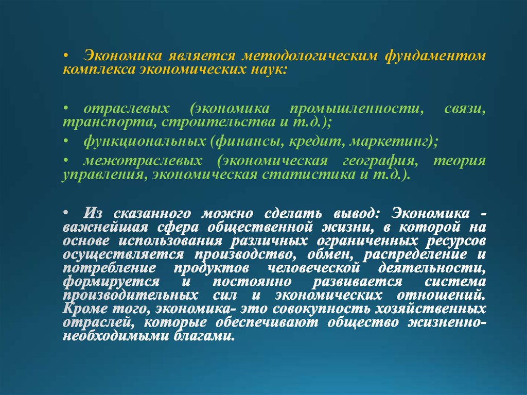 • Экономика является методологическим фундаментомкомплекса экономических наук: