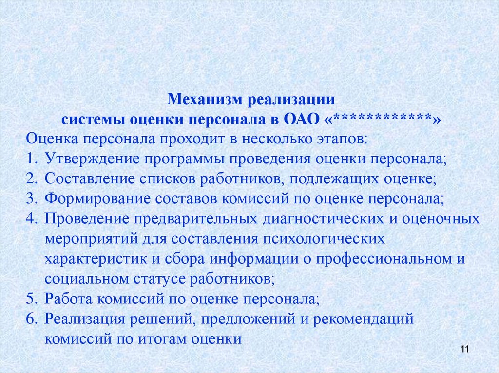 Механизм реализациисистемы оценки персонала в ОАО «************»