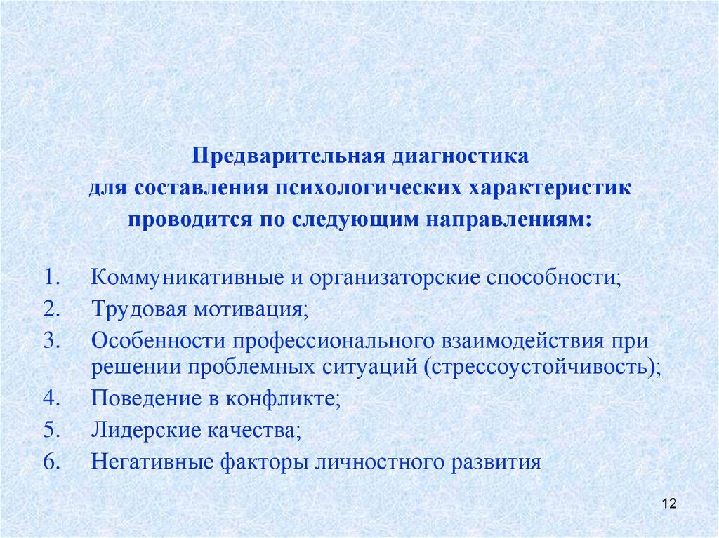 Предварительная диагностикадля составления психологических характеристик
