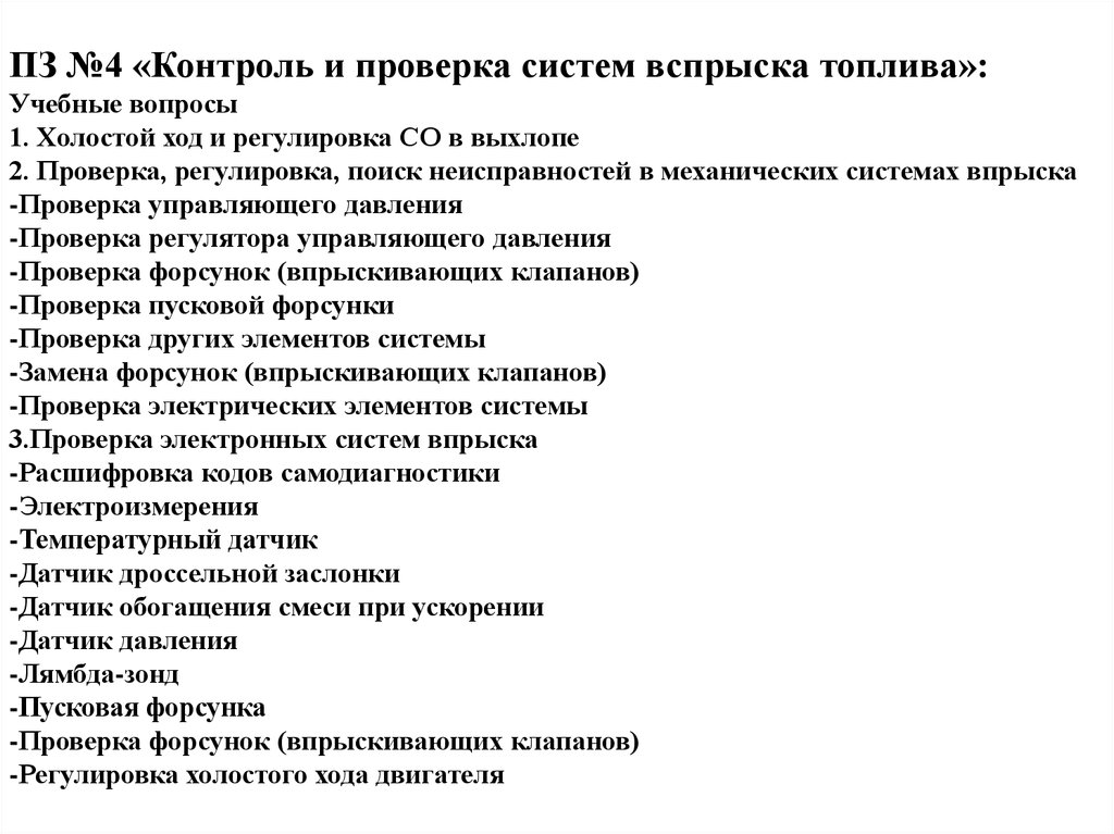 ПЗ №4 «Контроль и проверка систем вспрыска топлива»:Учебные вопросы