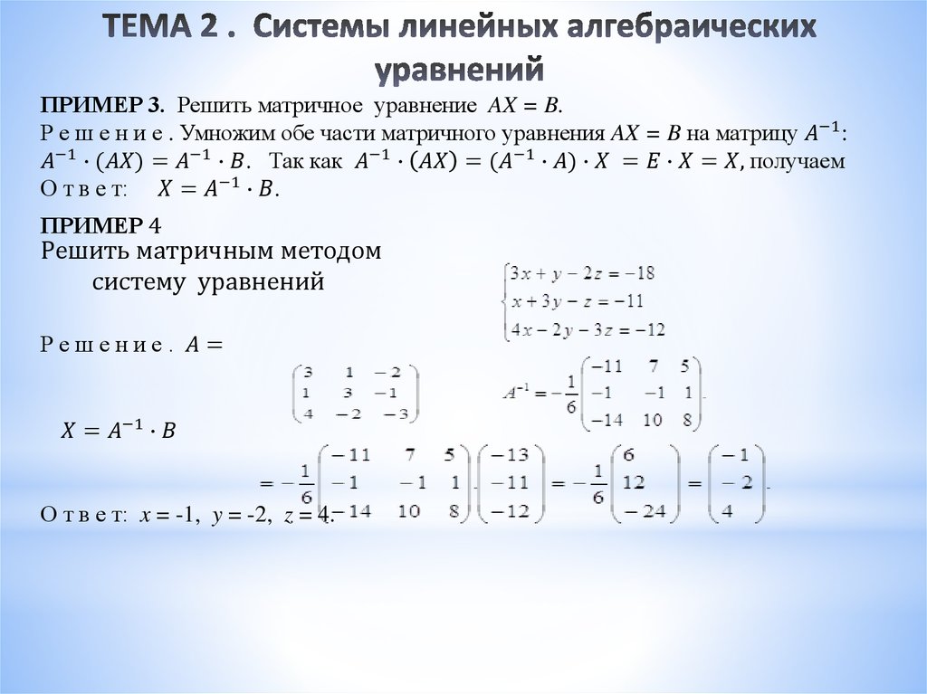 Элементы линейной алгебрыОдной из основных задач линейной алгебры является