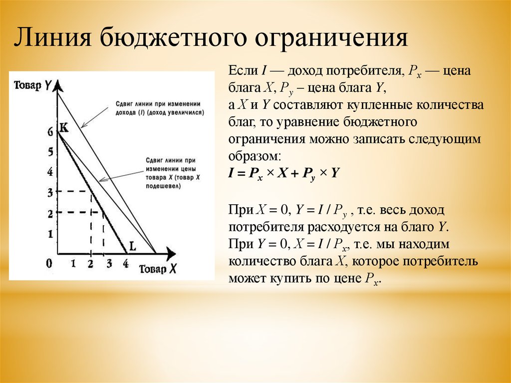 Линия бюджетного ограниченияЕсли I — доход потребителя, Рх — цена