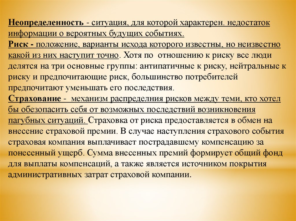 пагубных ситуаций. Страховка от риска предоставляется в обмен на