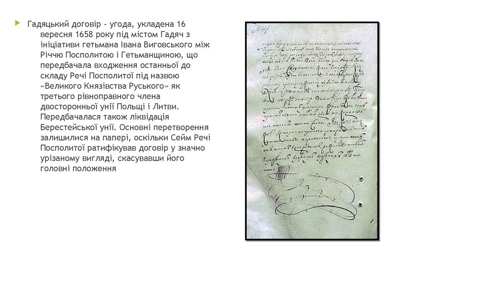 Гадяцький договір - угода, укладена 16вересня 1658 року під містом Гадяч з