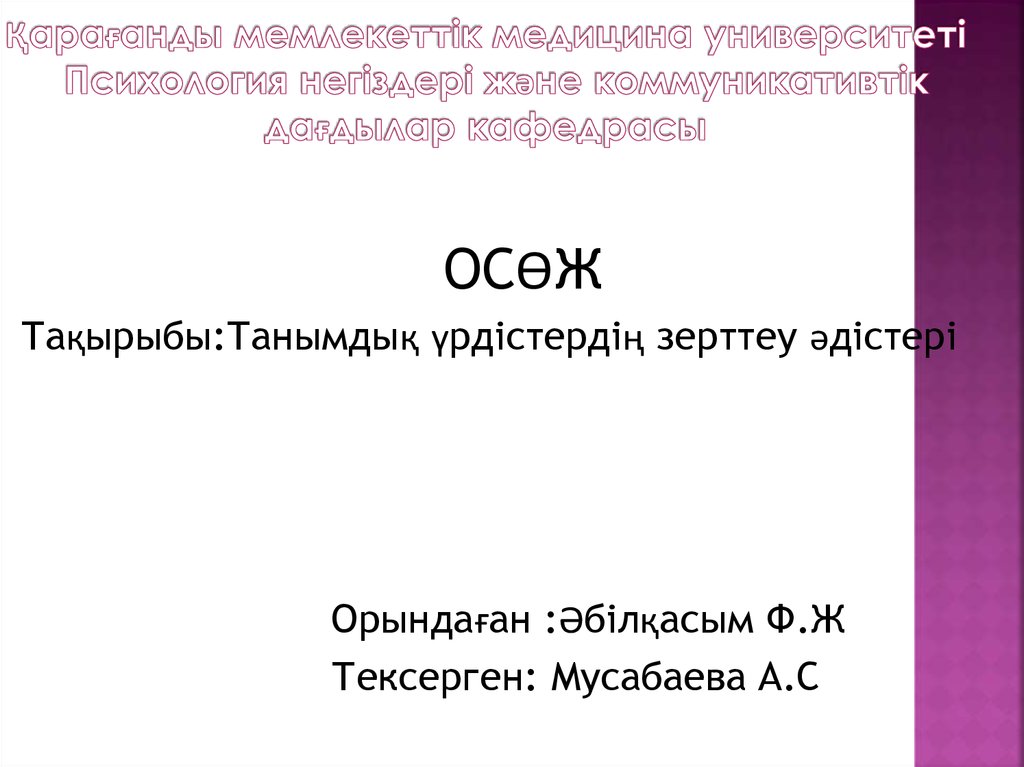 ОСӨЖТақырыбы:Танымдық үрдістердің зерттеу әдістері