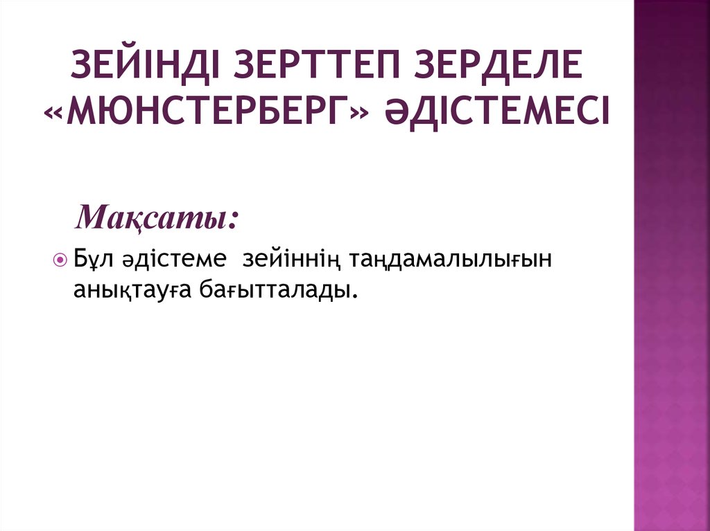 ЗЕЙІНДІ ЗЕРТТЕП ЗЕРДЕЛЕ«МЮНСТЕРБЕРГ» ӘДІСТЕМЕСІ