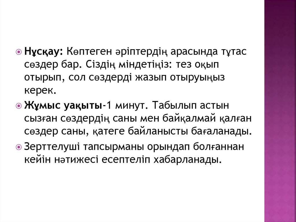сөздер бар. Сіздің міндетіңіз: тез оқып