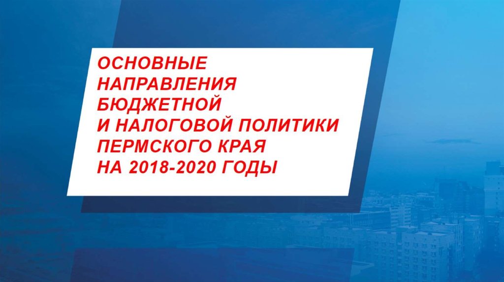 Основные направления бюджетной и налоговой политики Пермского края на 2018 - 2020-е годы