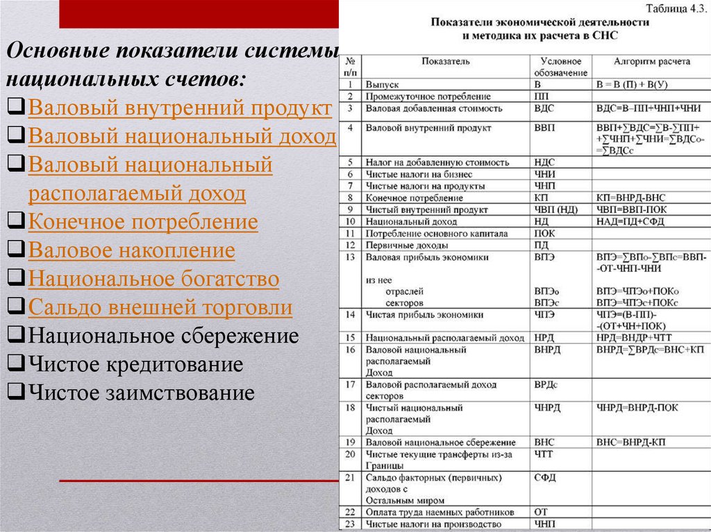 таких как валовый внутренний продукт, валовый национальный