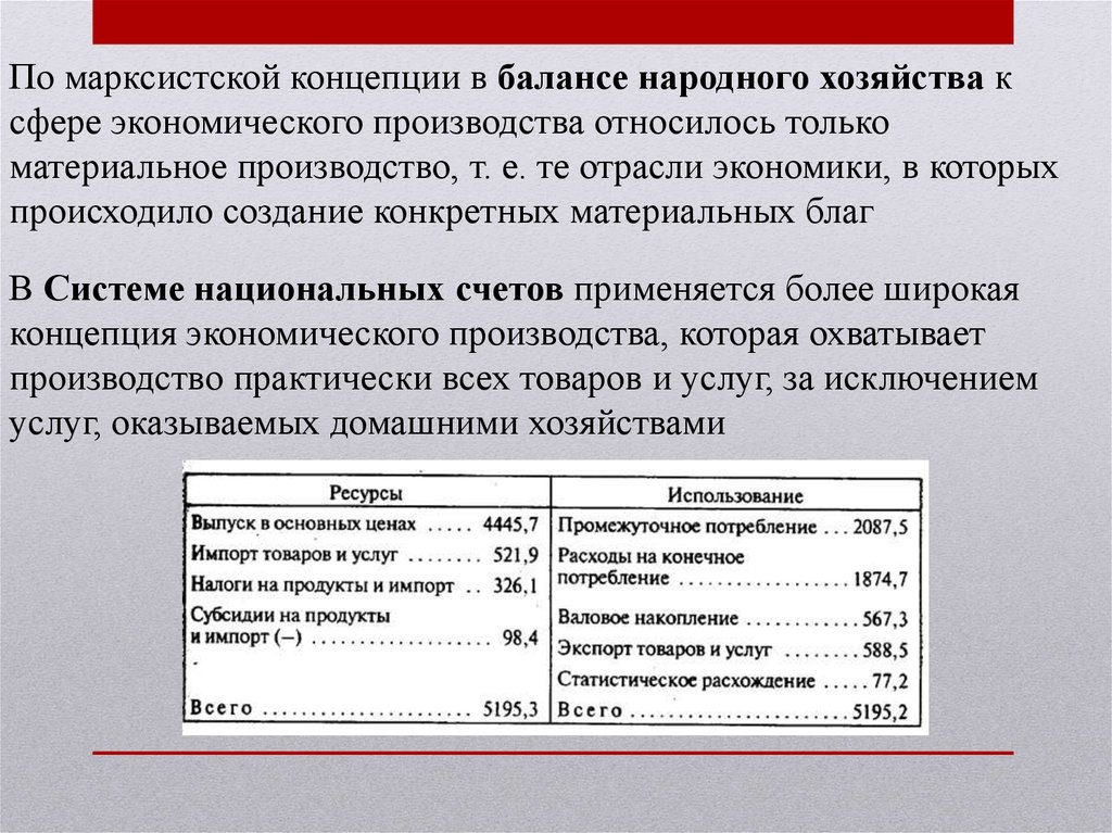 По марксистской концепции в балансе народного хозяйства ксфере экономического производства относилось только