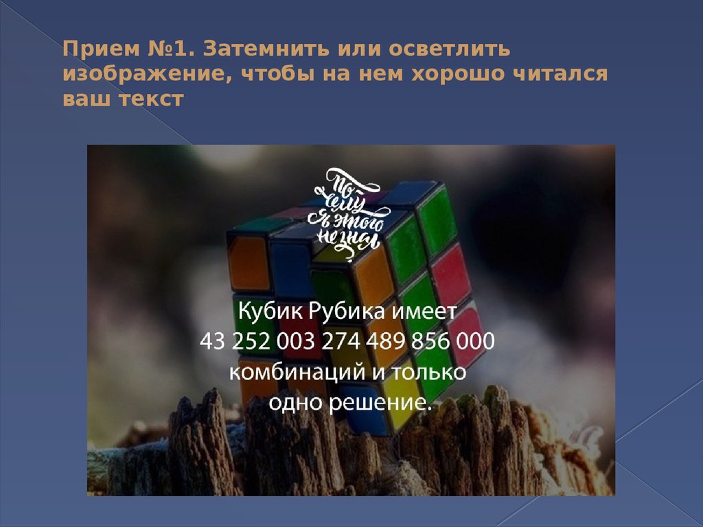 4. Прием №1. Затемнить или осветлить изображение, чтобы на нем хорошо читался ваш текст