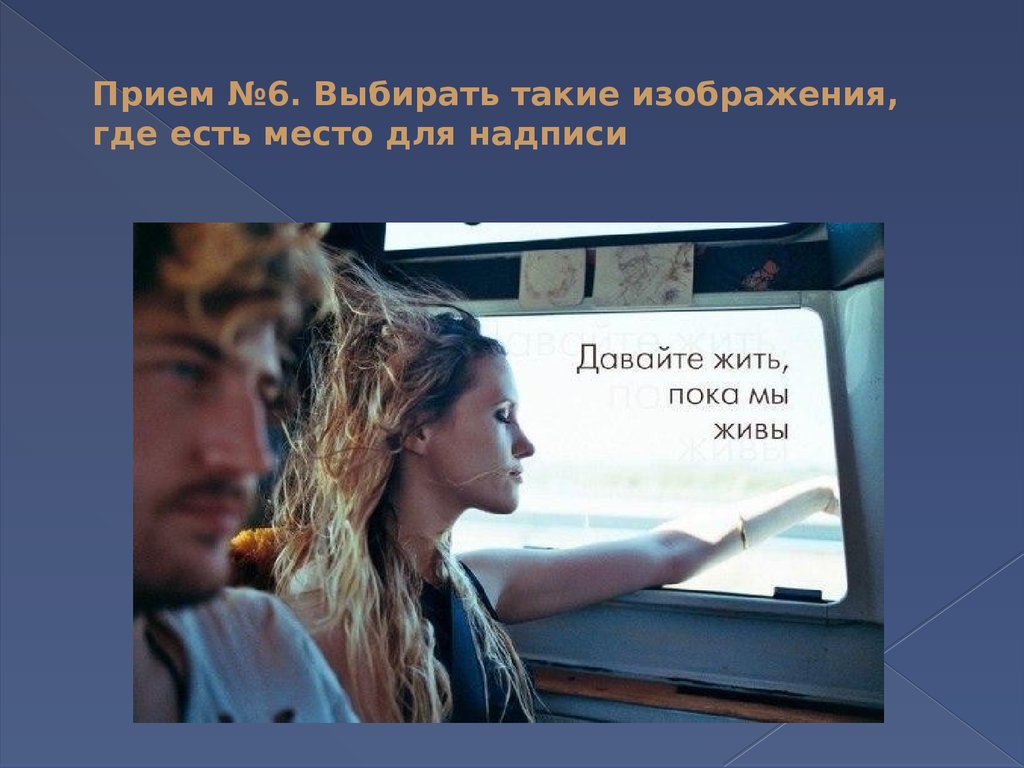 10. Прием №6. Выбирать такие изображения, где есть место для надписи