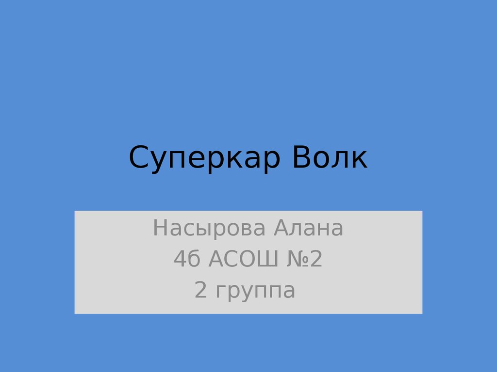1. Суперкар Волк