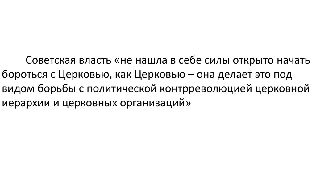 Советская власть «не нашла в себе силы открыто начатьбороться с Церковью, как Церковью – она делает это под