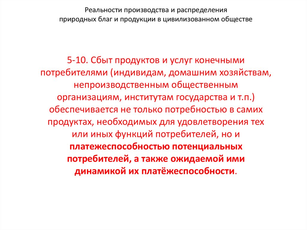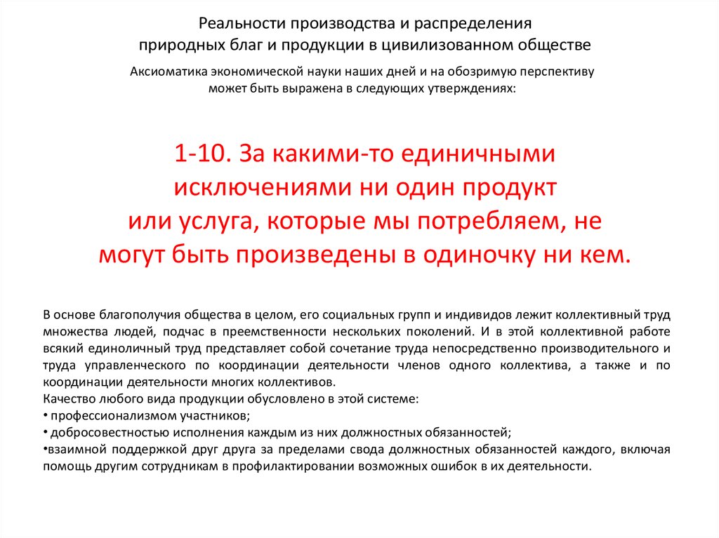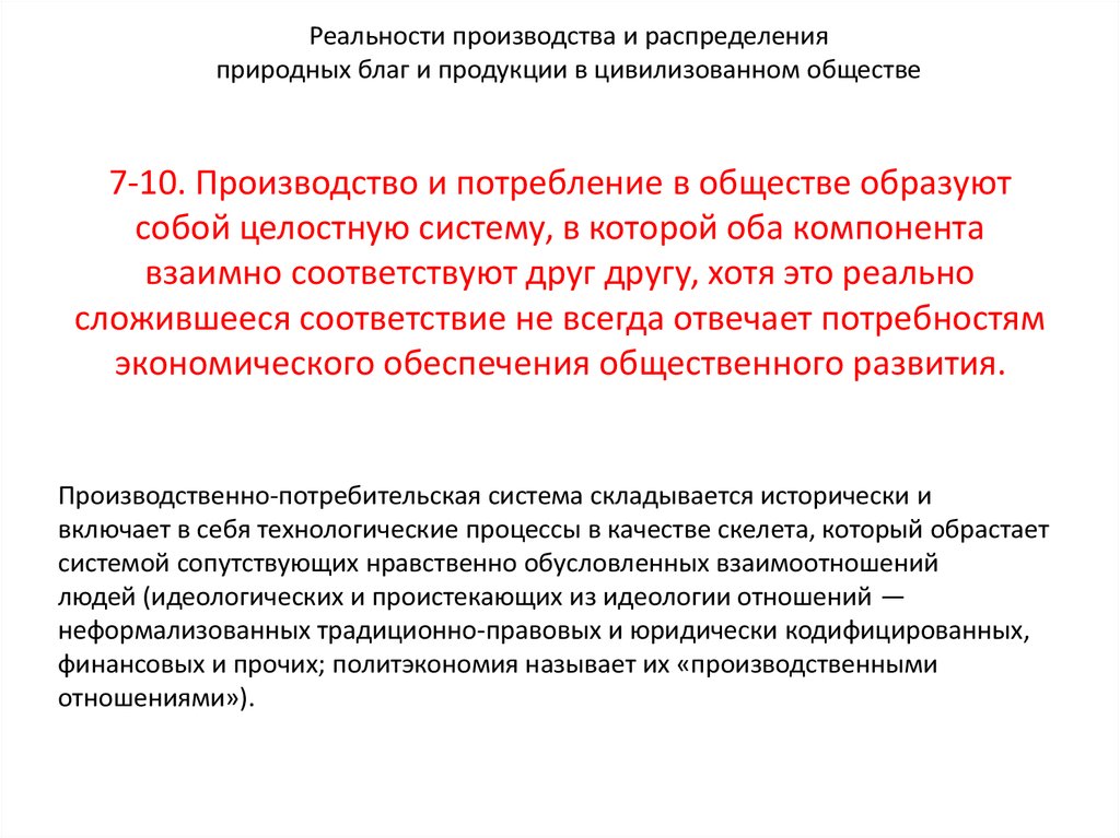 Реальности производства и распределенияприродных благ и продукции в цивилизованном обществе