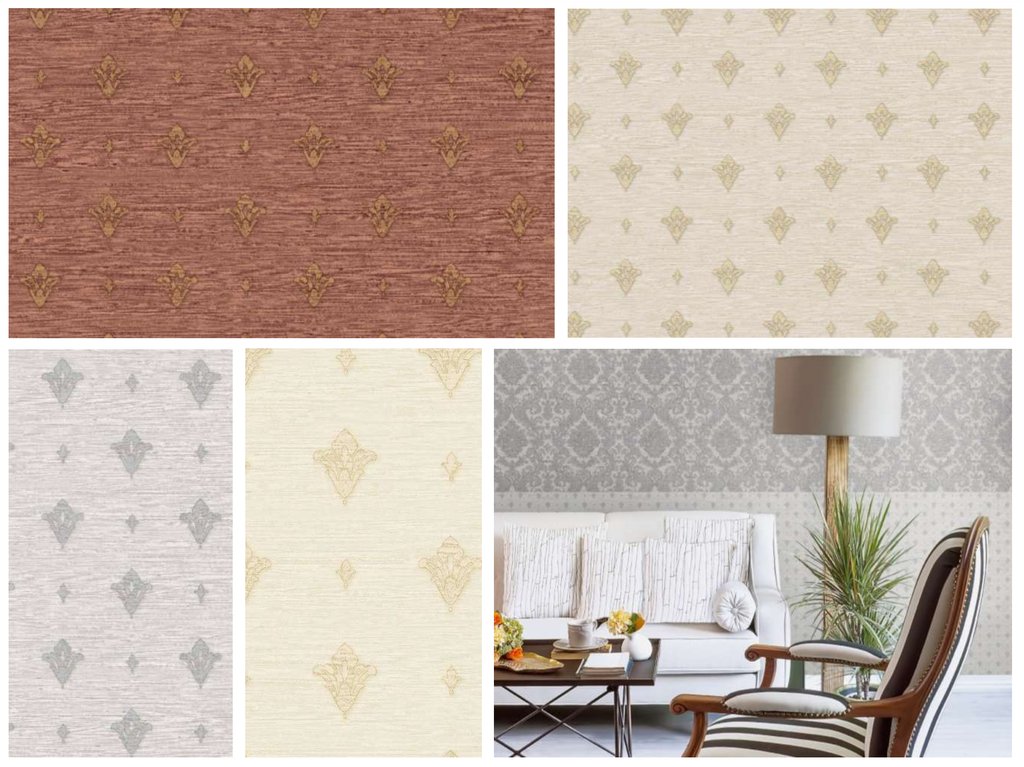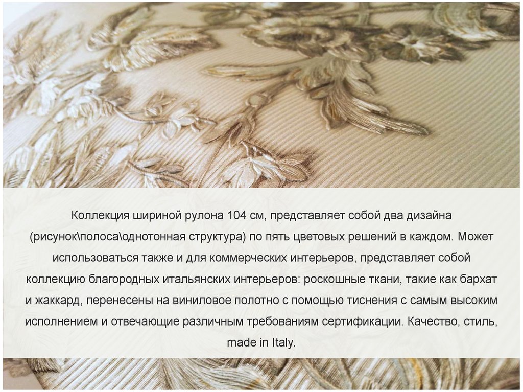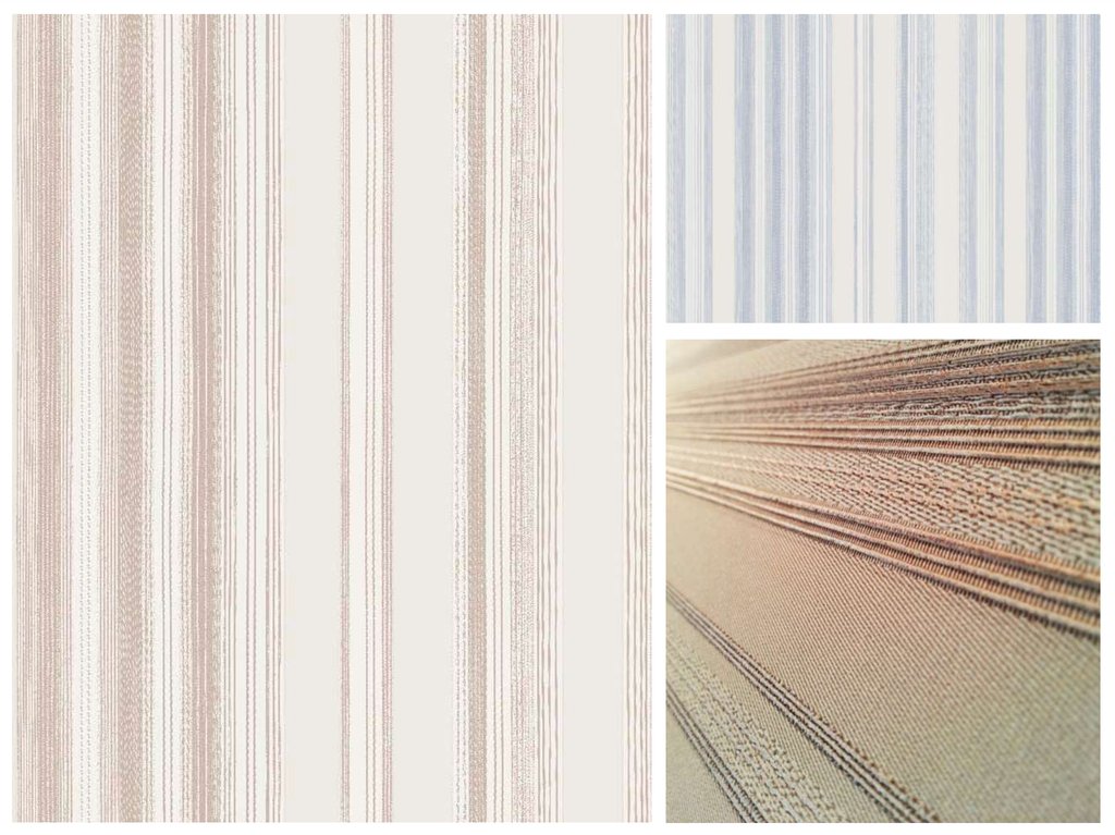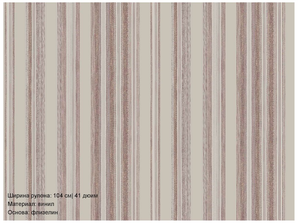 Коллекция шириной рулона 104 см, представляет собой два дизайна(рисунок\полоса\однотонная структура) по пять цветовых решений в каждом. Может
