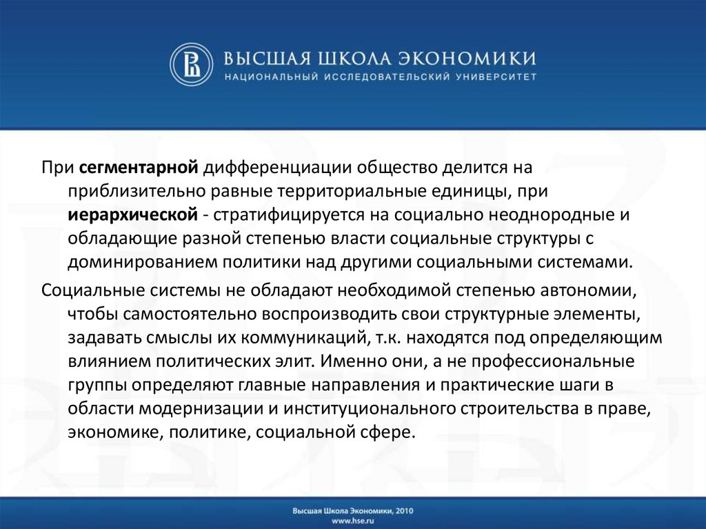 Общества с функциональной дифференциациейсложноорганизованные, современные общества