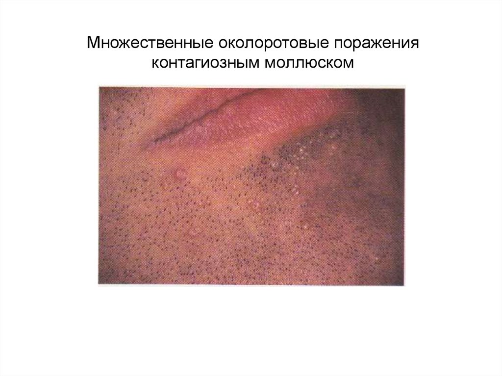 Множественные околоротовые пораженияконтагиозным моллюском