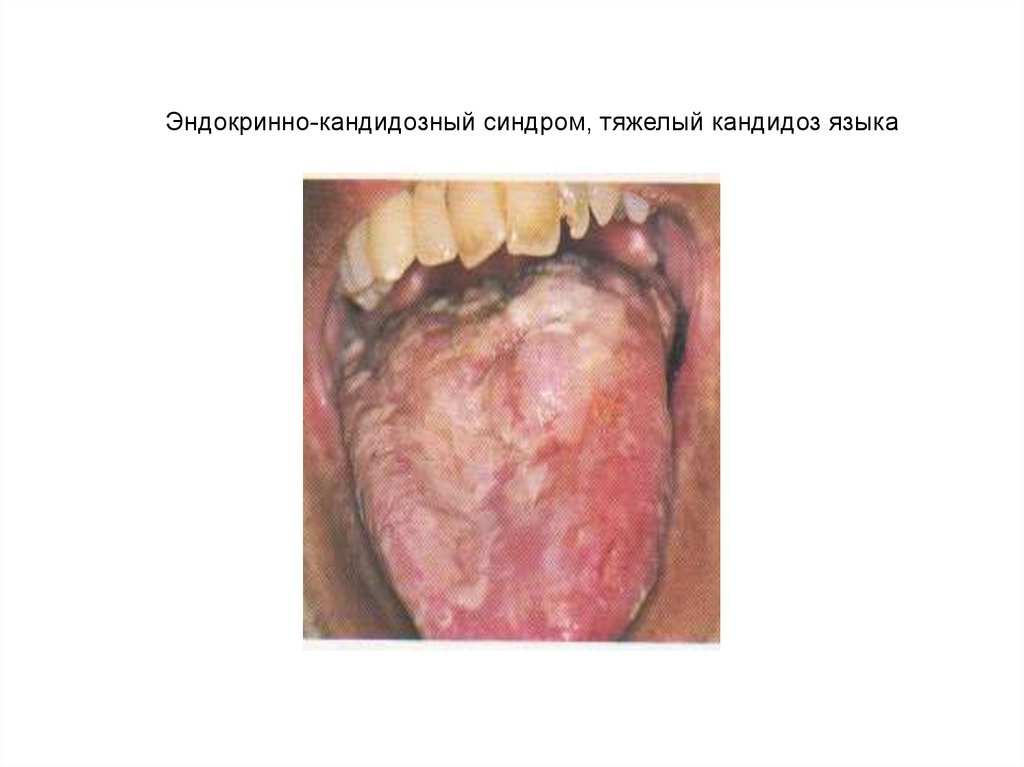 Эндокринно-кандидозный синдром, тяжелый кандидоз языка12.