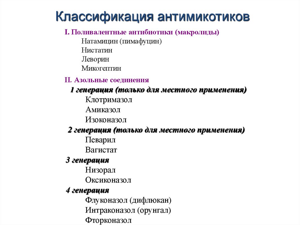 Классификация антимикотиковI. Поливалентные антибиотики (макролиды)
