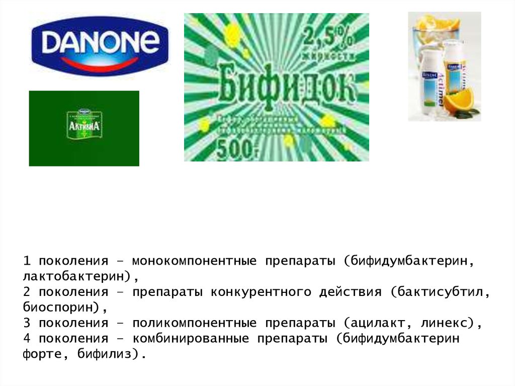 2 поколения – препараты конкурентного действия (бактисубтил,