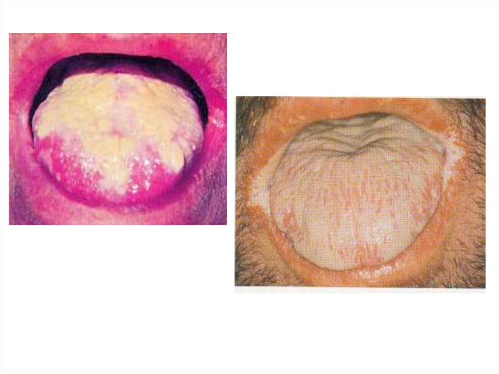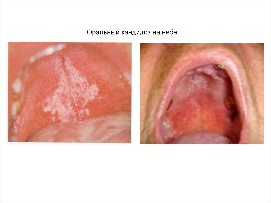 Хронический псевдомембранозный кандидоз на нёбе7.