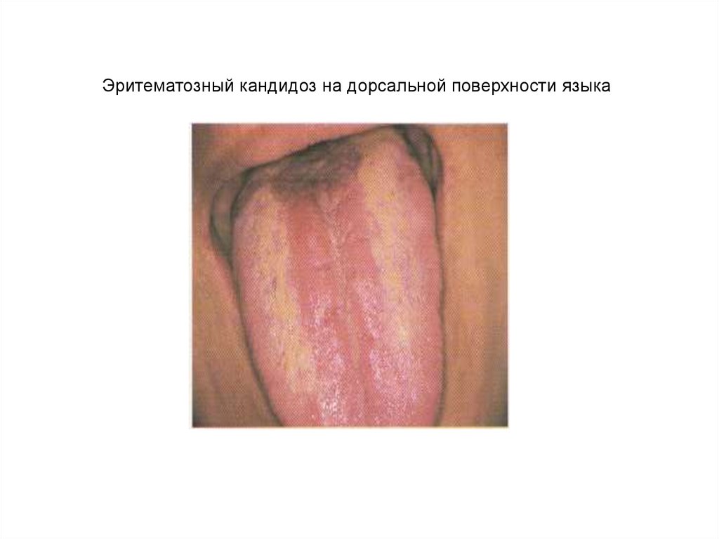 Эритематозный кандидоз на дорсальной поверхности языка8.