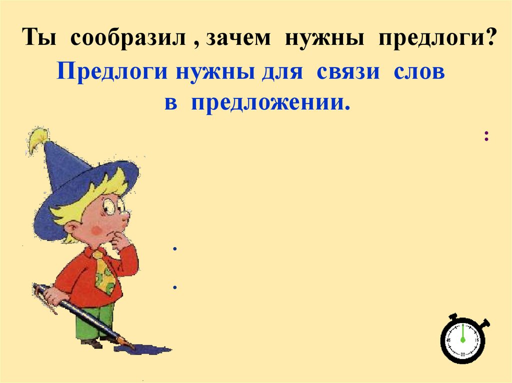 Ты сообразил , зачем нужны предлоги?Предлоги нужны для связи слов
