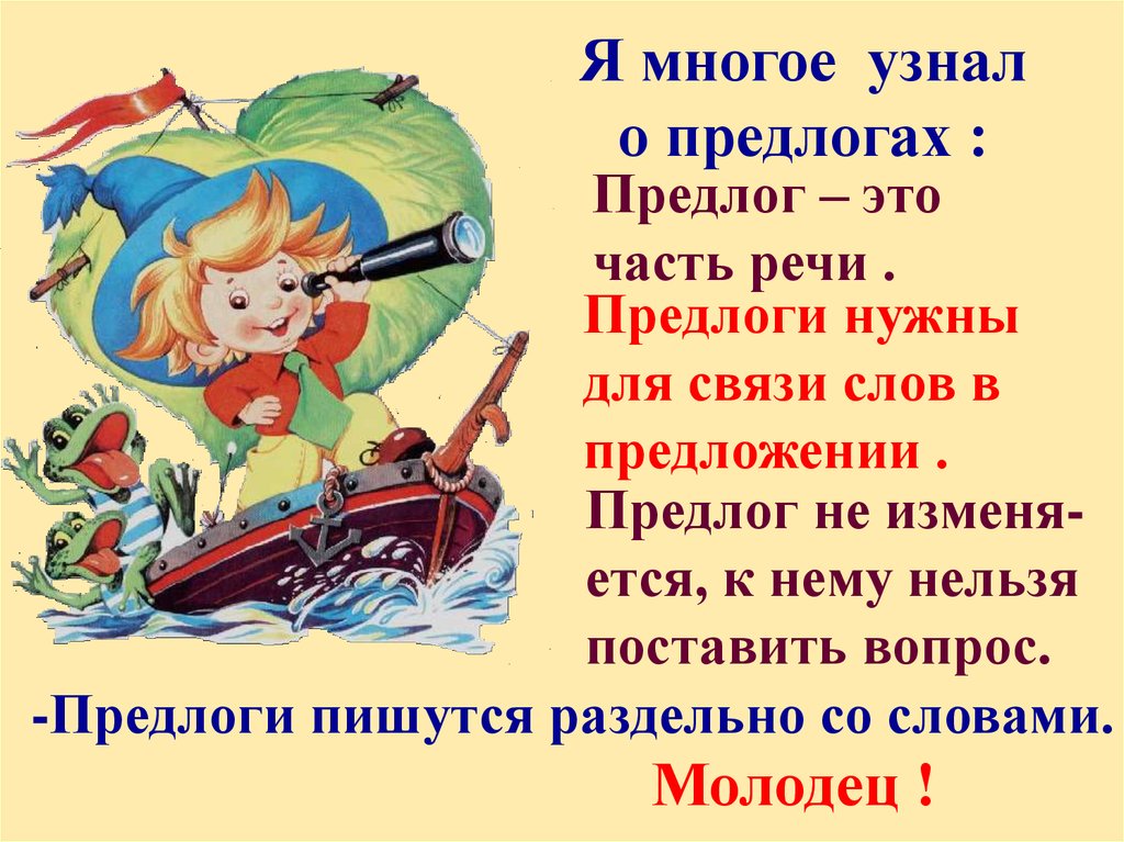 Я многое узнало предлогах :