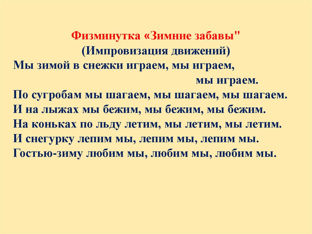 Физминутка «Зимние забавы"(Импровизация движений)