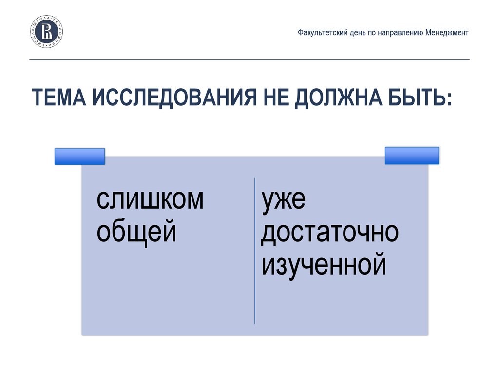 Факультетский день по направлению МенеджментТЕМА ИССЛЕДОВАНИЯ НЕ ДОЛЖНА БЫТЬ: