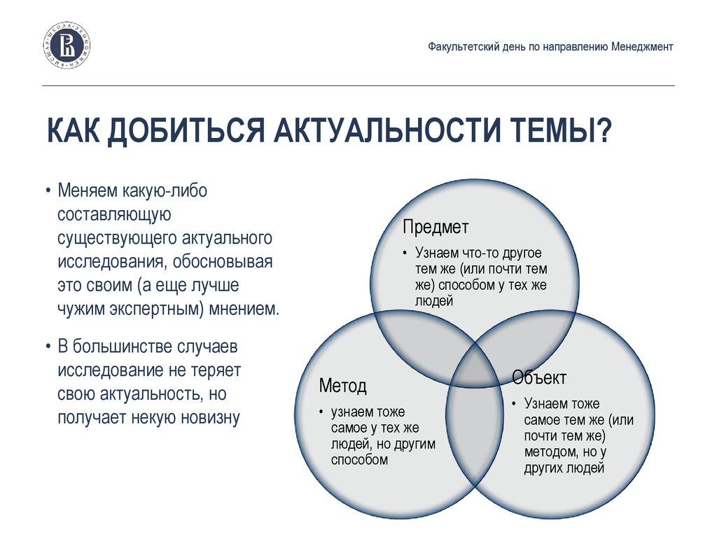 Факультетский день по направлению МенеджментКАК ДОБИТЬСЯ АКТУАЛЬНОСТИ ТЕМЫ?