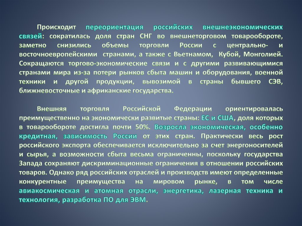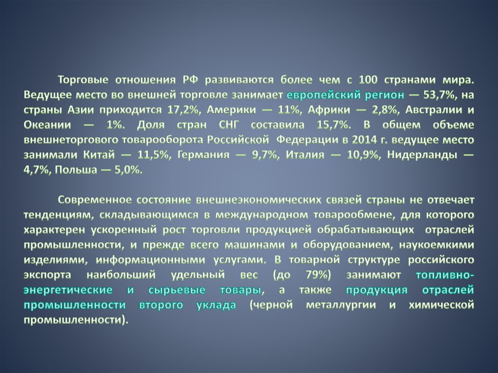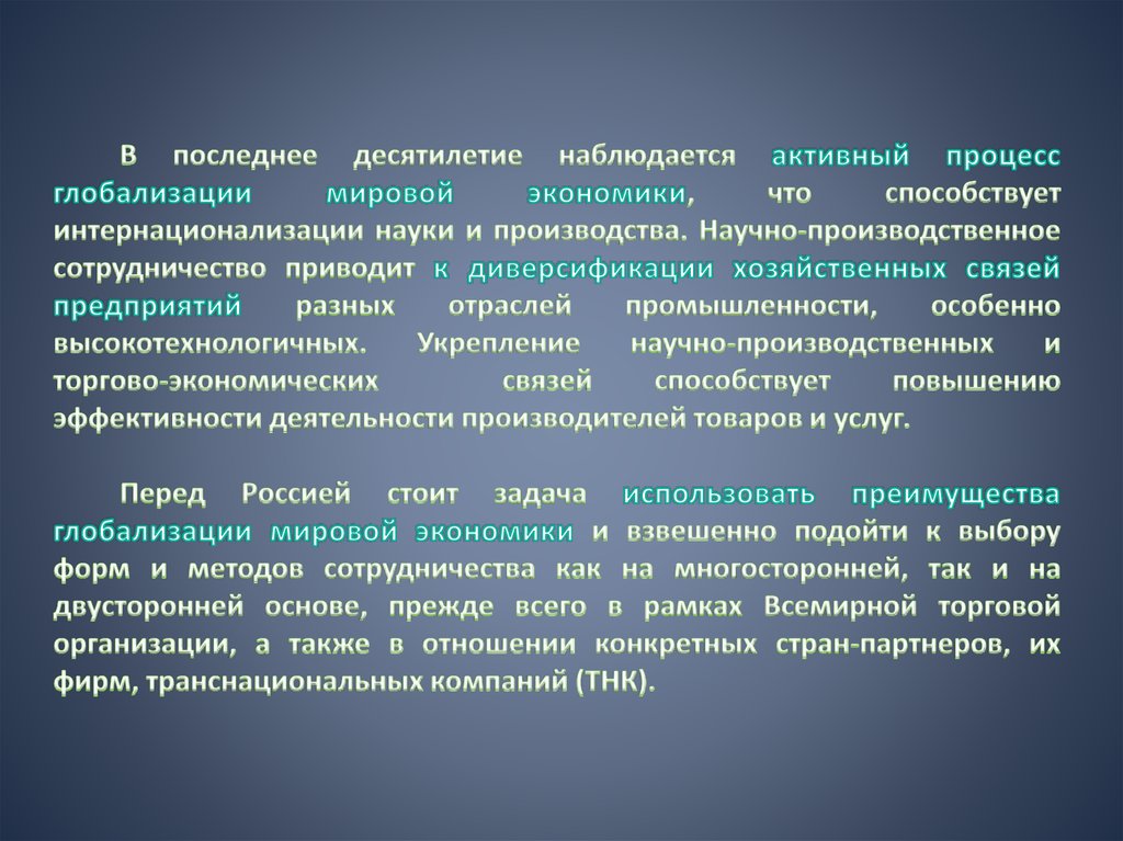Определение роли России и её отдельных регионов в Международном географическом разделении труда